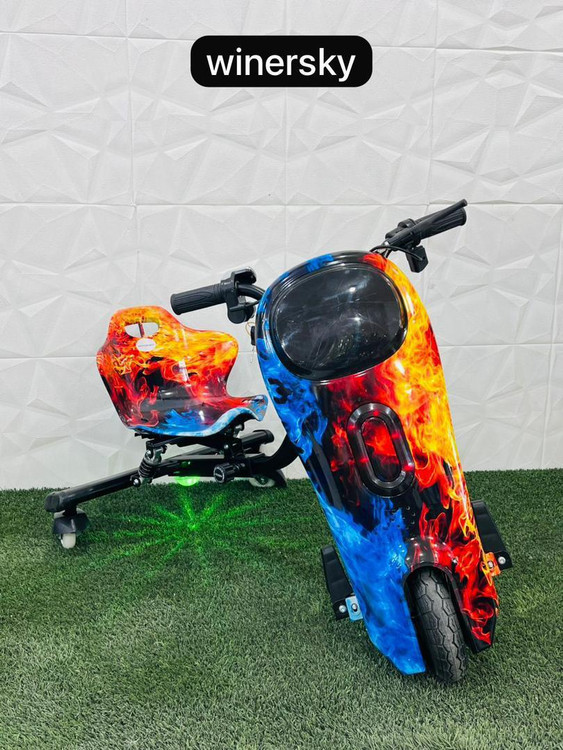 نسل جدید اسکوتر های برقی به صورت موتوری که بسیار مهیج تر از اسکوترهای معمولی است . این مدل اسکوتر ها سه چرخ بوده چرخهای عقب آن معلق می باشد که این امر باعث شده حرکت با آن به صورت 360 درجه ای و بسیار مهیج شود این مدل از اسکوتربرقی ها بسیار سریع و هیجان انگیز است . موتور دریفت با باطری لیتیومی 36 ولتی با آمپر بالا امکان زمان بیشتر شما از اسکوتر را فراهم می کند. این اسکوتر دارای موتور براشلس 600 واتی قدرتمند می باشد.